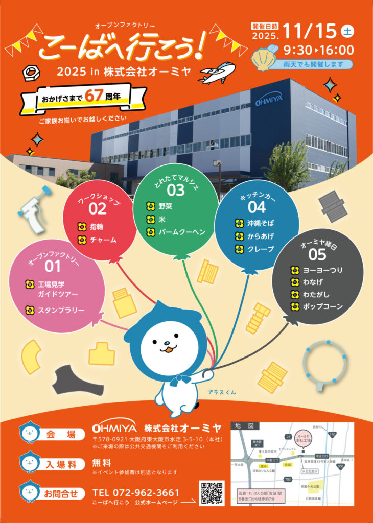 弊社は、東大阪市で開催する、オープンファクトリー「こーばへ行こう!」へ参加いたします。