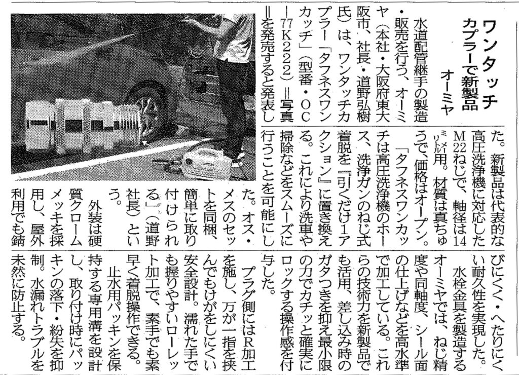 鉄鋼新聞にて、「OC-77K222 タフネスワンカッチ」が紹介されました。