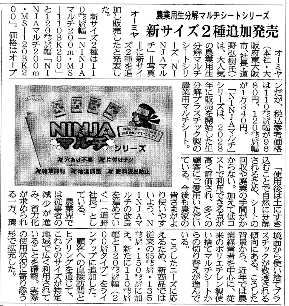 鉄鋼新聞にて、「NINJAマルチ200m 110cm幅、120cm幅」が紹介されました。